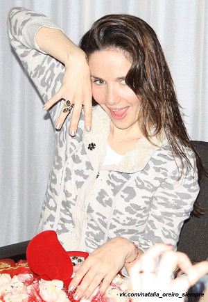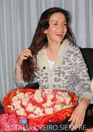 Между вручением подарков Нати обменивалась с нами эмоциями по поводу приема ее в Галерее, она сказала, что была крайне удивлена большому скоплению народа и очень сожалела, что пришлось прервать автограф-сессию. Также спросила, понравился ли нам её сюрприз для нас на концерте – боа из чебурашек, которых она накануне вечером перед концертом сшивала. Конечно, речь не могла не зайти о её с сестрой совместной марке «LasOreiro», тем более, что Нати больше уже не рекламируя ее официально, является лицом марки, на ней было красное пальто, когда она прилетела в Санкт-Петербург, она и на автограф-сессии была в шикарном платье из последней коллекции и на самом концерте и даже перед нами сидела в джинсах своей же марки и всех поклонников интересовал вопрос – появится ли марка сестер Oreiro в России. Ответ «может быть» успокоил, но у меня в голове пронеслось - пока это «может быть» наступит, наша Ирочка уже дарит счастья – прикоснуться к этой марке и миру LasOreiro, так что не всё ещё потеряно.