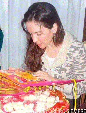 И главным завершающим подарком от нашей группы "NataliaOreiro SIEMPRE" стала книга пожеланий, также ручной работы, сделанная в стиле сериала, в котором снималась Наталия, увидев обложку, Нати сразу узнала и сказала “Качорра!”, прочитав вступление в книге и пролистав страницы, где были завязанные конвертики, Нати поняла, что ее ждет сюрприз, но для этого нужно время....мы очень надеемся, что этот сюрприз ей понравится, ведь в него вкладывали душу десятки человек. В каждом конвертике находятся письма и небольшие сувениры от поклонников, собранные с разных городов и даже стран.