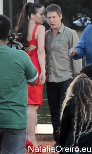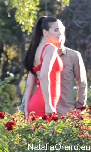 Тем временем Нати уже успела сбегать в гримёрку, переодеться в красное платье и причесаться по-новому. Опять немного порепетировав, стали снимать. Довольно долго Нати пришлось валяться на бетонном полу среди роз. Всё-таки издержки профессии, бетон в 25 градусов неособо тёплый, как и открытое платье при довольно сильных порывах ветра и то и дело прячущемся солнышке. Но Нати стойко переносила холод и ветер, а временами и палящие лучи солнца. Такая вот уж погодка в Аргентине - пока светит солнышко - жарко, как только оно прячется за тучку, то пробирает холодом до костей.Сняли три ракурса для песни в кустах красных роз. Как они там все только не поцарапались об эти розы! Но получилось очень красиво!